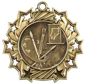 Why settle with one star when you can have TEN? These 2 ¼ inch Ten Star Medals are available in Antique Gold, Antique Silver and Antique Bronze. You can also place a 1 ½ inch disc on the back of this medal for added personalization. Do not forget to add your free neck ribbon to complete this piece. Personalization is available at an additional cost.