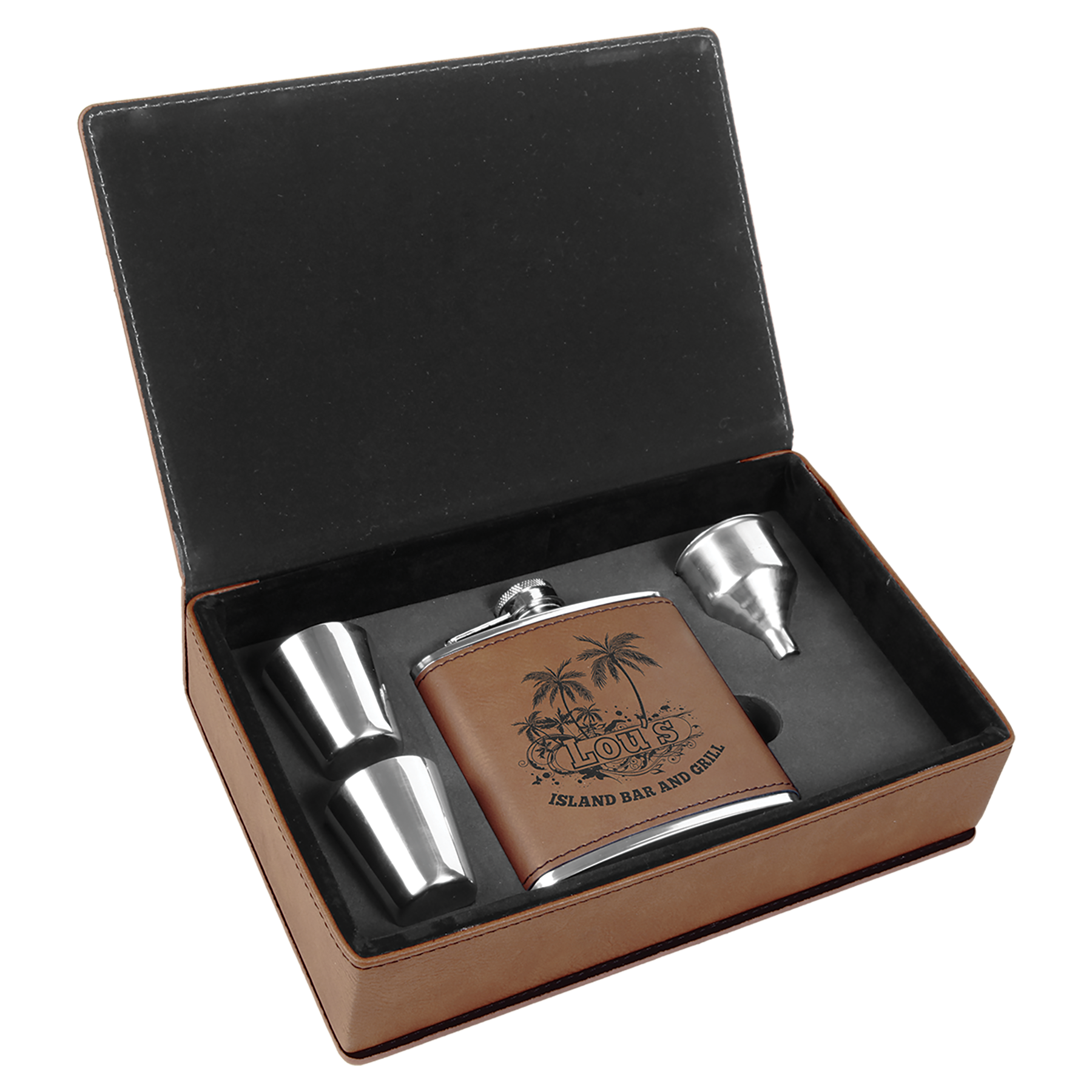 6 oz. Dark Brown Laserable Leatherette Flask Gift Set