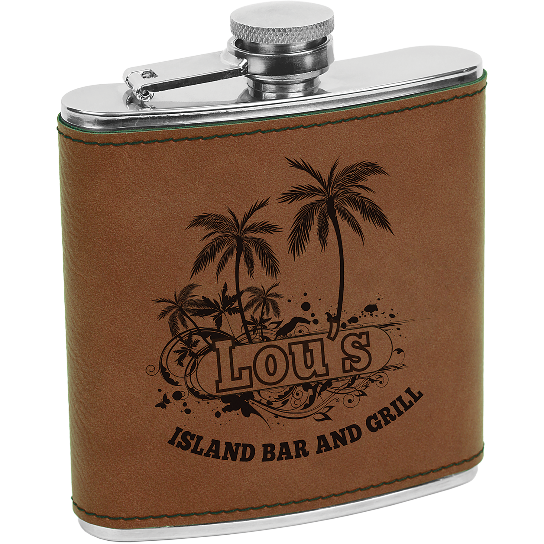 6 oz. Dark Brown Laserable Leatherette Stainless Steel Flask