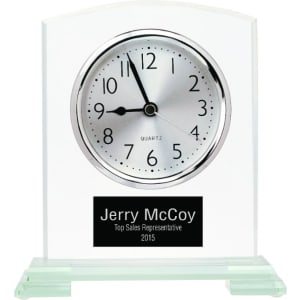 Glass Clocks feature second hand timing and alarm. All Glass Clocks are individually boxed and include AA batteries. They are easily customizable by laser engraving and sandcarving. 5 3/4"(L) x 6 1/2"(H)