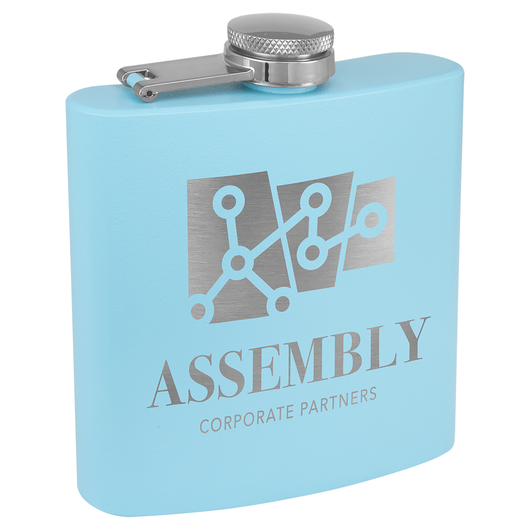 6 oz. Matte Light Blue Powder Coated Laserable Stainless Steel Flask