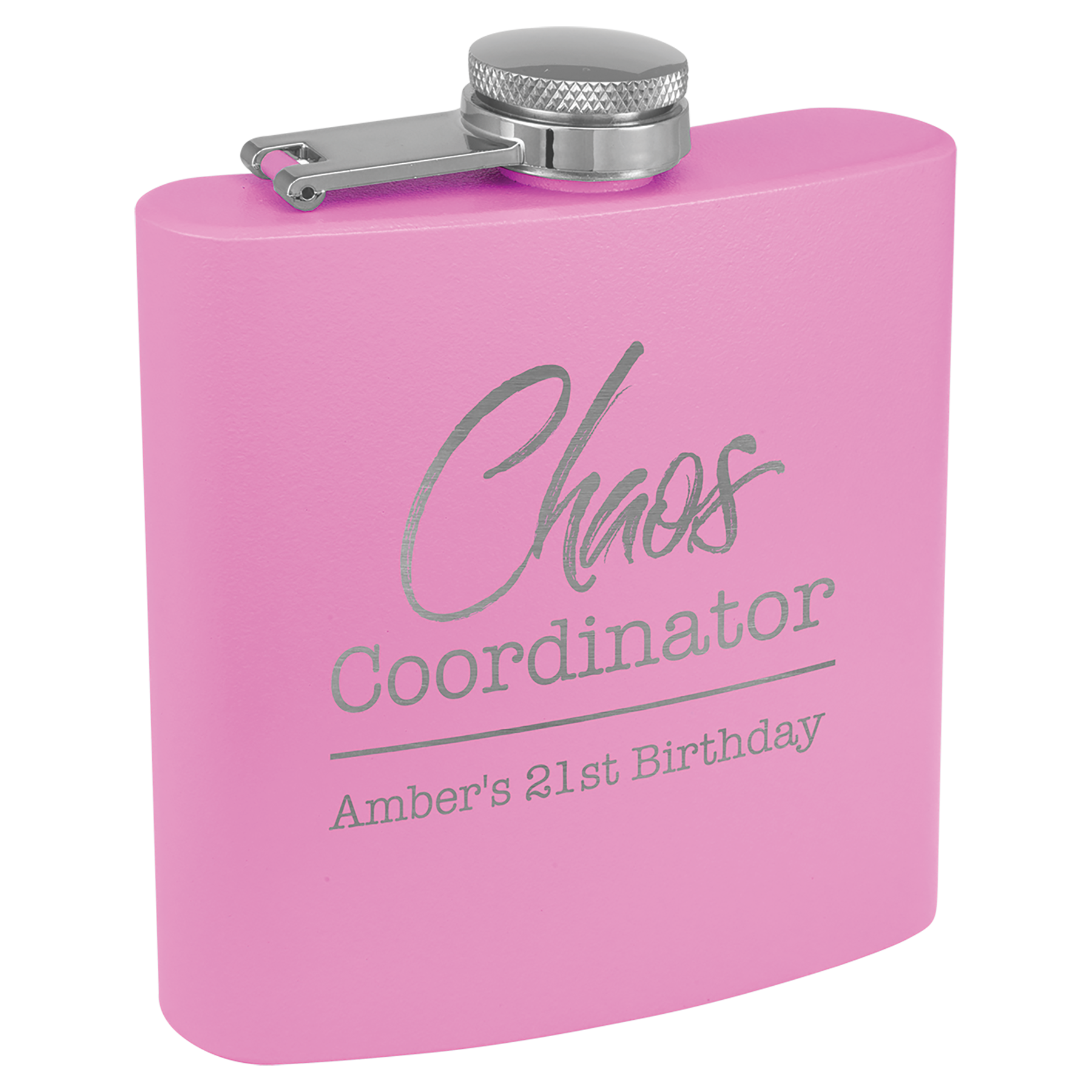 Our 6 oz. Light Purple stainless steel flasks are powder coated for an exceptional matte, textured, look and feel. Our flasks engrave silver for brilliant contrast! Personalize with your logo, image or text to create stunning Bridesmaid Gifts, Promotional Products, Corporate Gifts, Gifts For Her or Gifts For Him. Each flask comes with attached leak resistant cap.