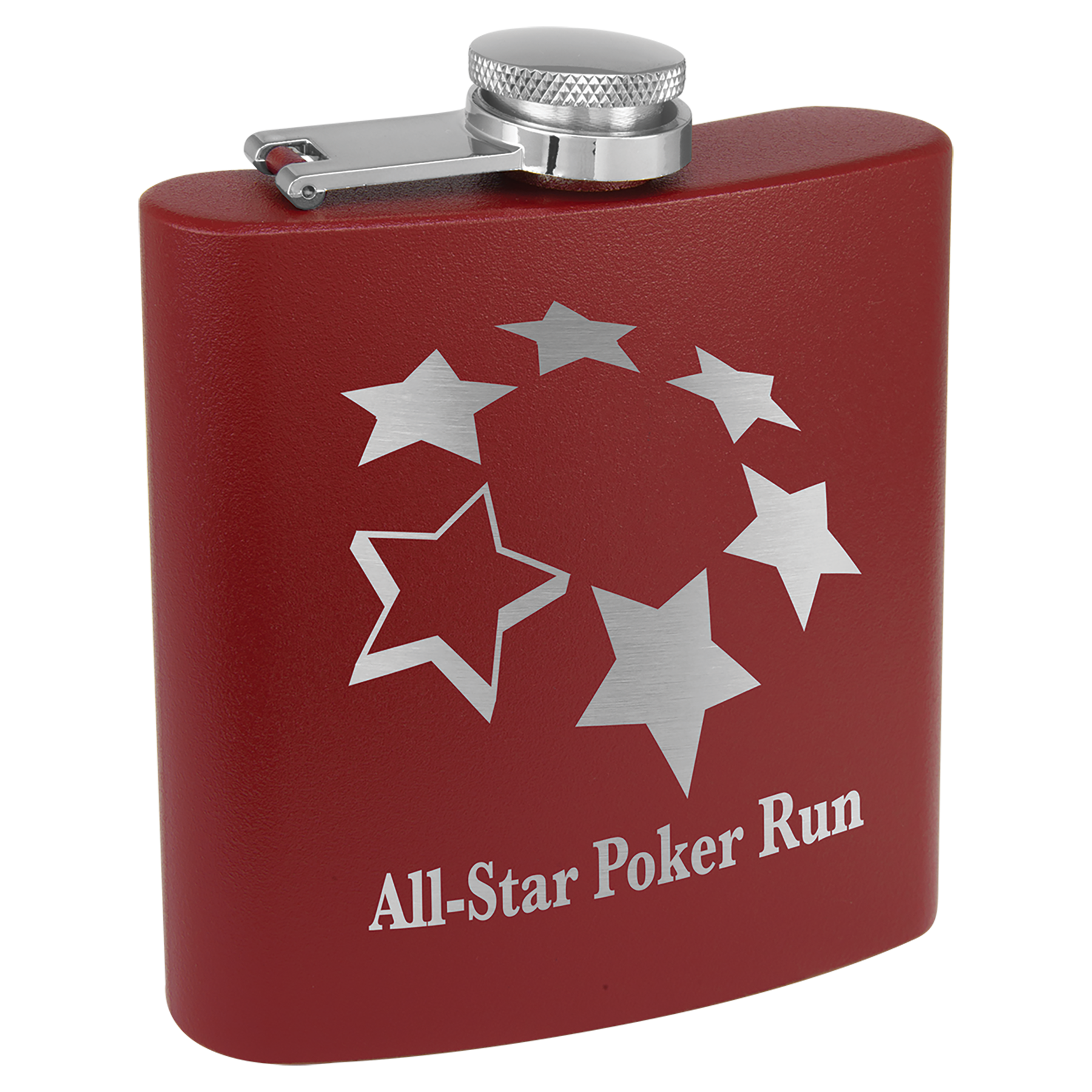 6 oz. Matte Maroon Powder Coated Laserable Stainless Steel Flask