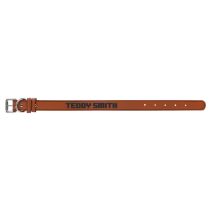 Laserable Leatherette dog collars are available in seven vibrant colors. All have a black back and are lightly padded for your pets comfort. The silver metal buckle and ring are heavy duty for durability and to keep yourpet secure. Available in four sizes.