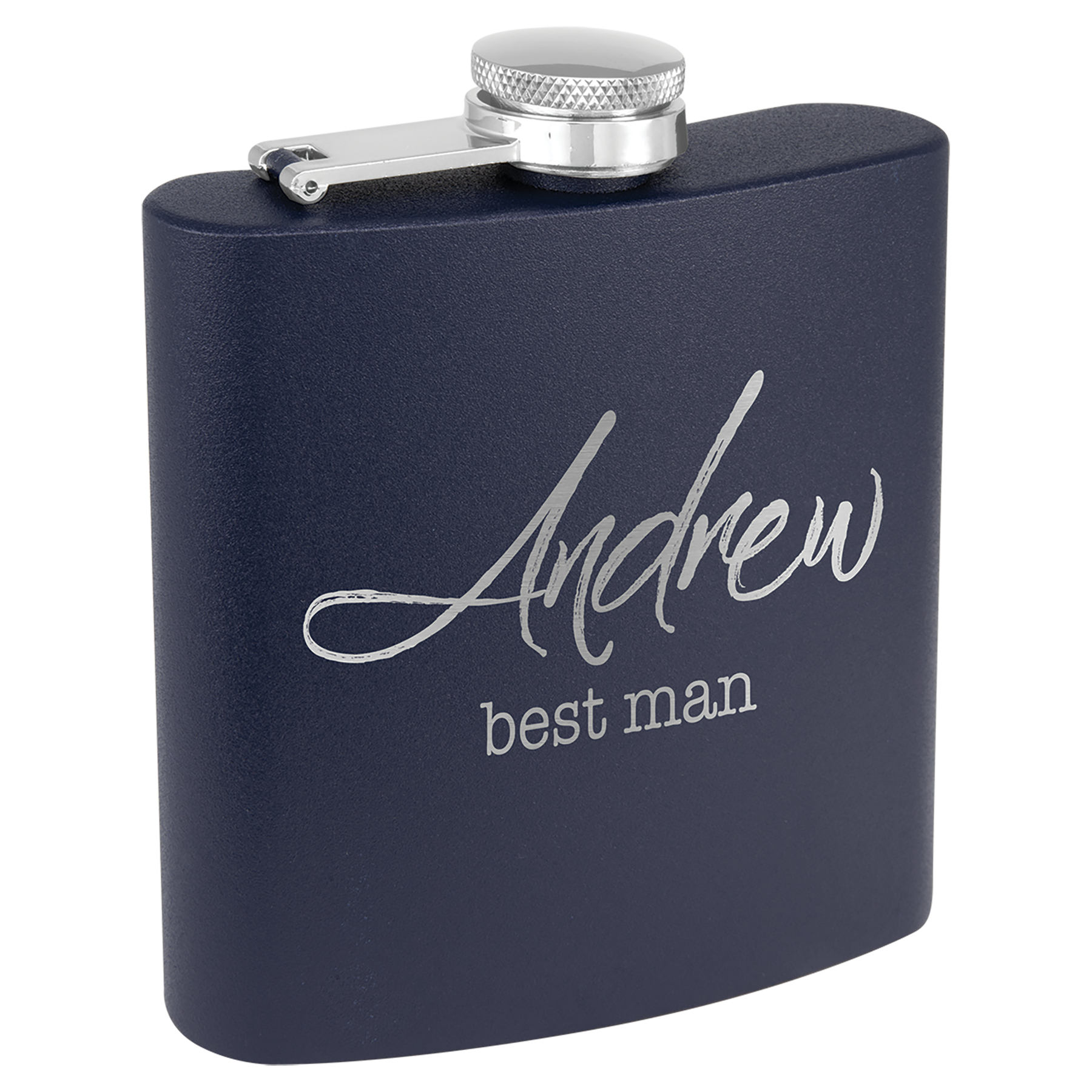 Our 6 oz. Navy Blue stainless steel flasks are powder coated for an exceptional matte, textured, look and feel. Our flasks engrave silver for brilliant contrast! Personalize with your logo, image or text to create stunning Bridesmaid Gifts, Promotional Products, Corporate Gifts, Gifts For Her or Gifts For Him. Each flask comes with attached leak resistant cap.