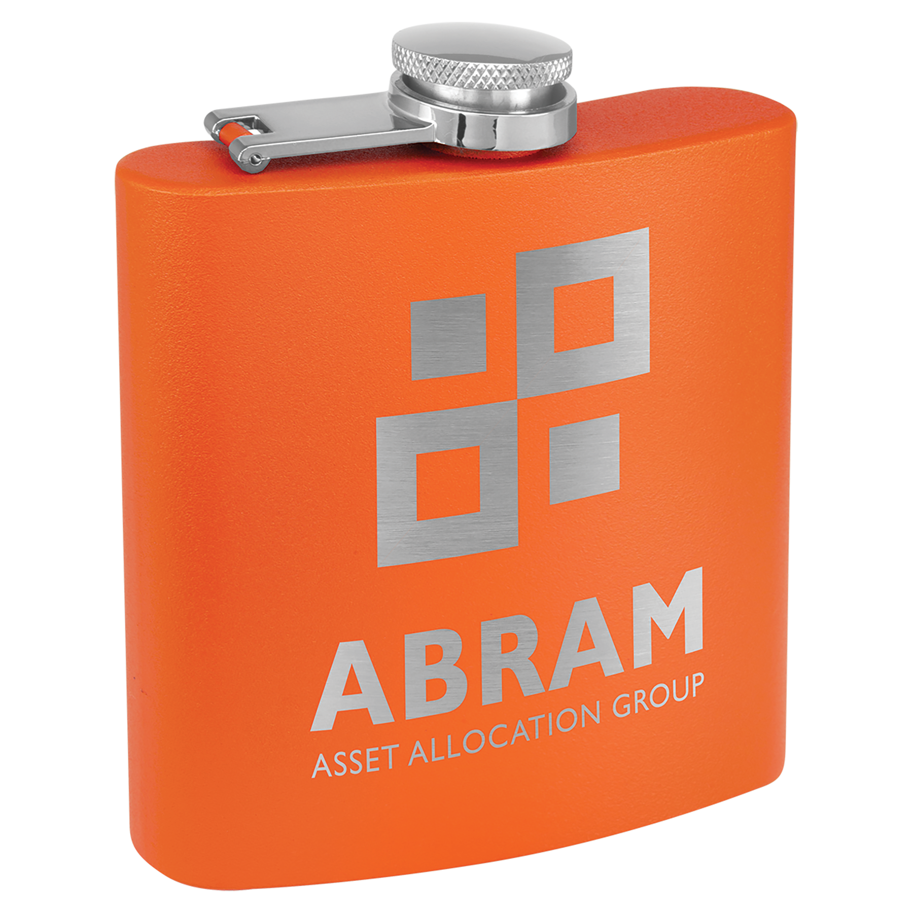 Our 6 oz. Orange stainless steel flasks are powder coated for an exceptional matte, textured, look and feel. Our flasks engrave silver for brilliant contrast! Personalize with your logo, image or text to create stunning Bridesmaid Gifts, Promotional Products, Corporate Gifts, Gifts For Her or Gifts For Him. Each flask comes with attached leak resistant cap.