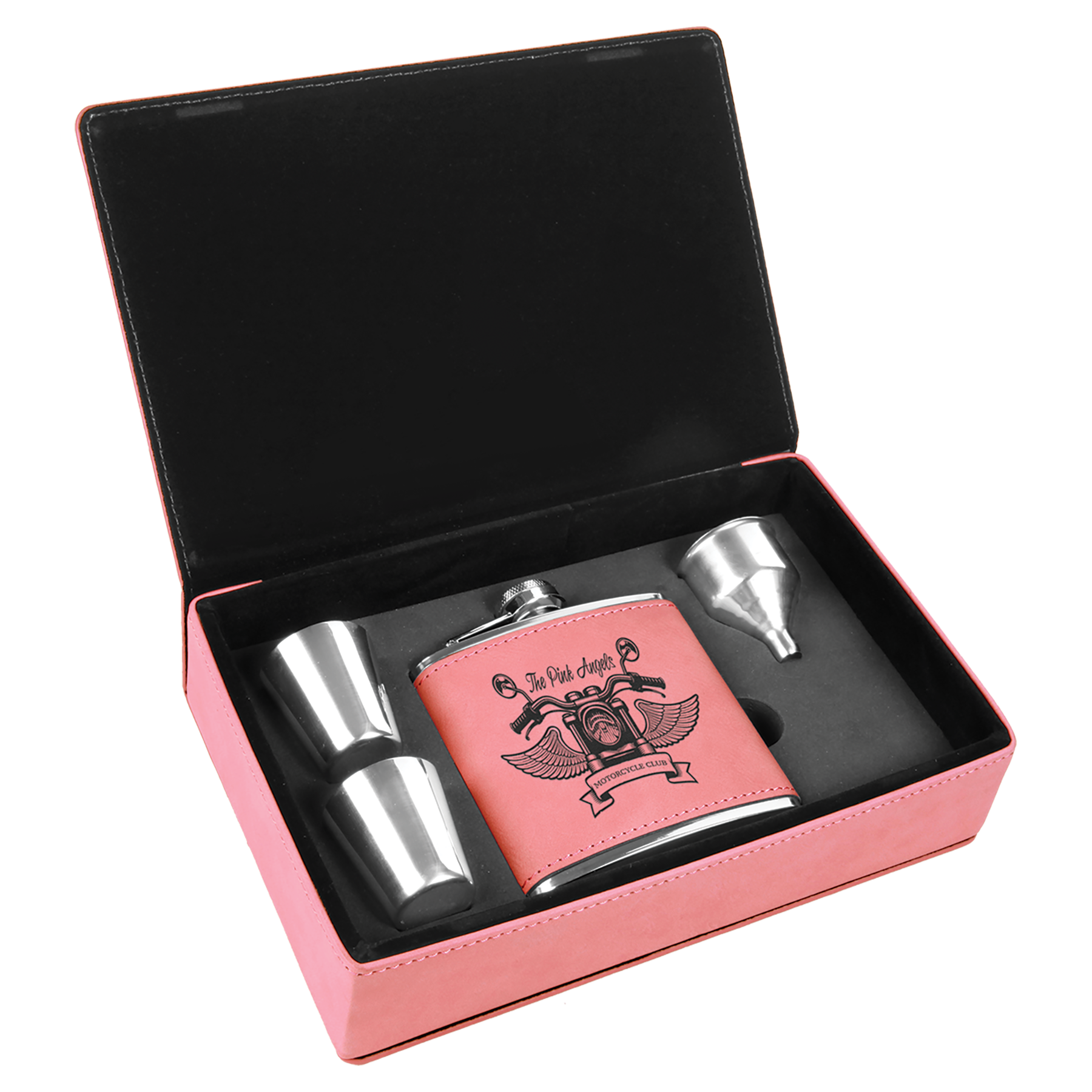 6 oz. Pink Laserable Leatherette Flask Gift Set