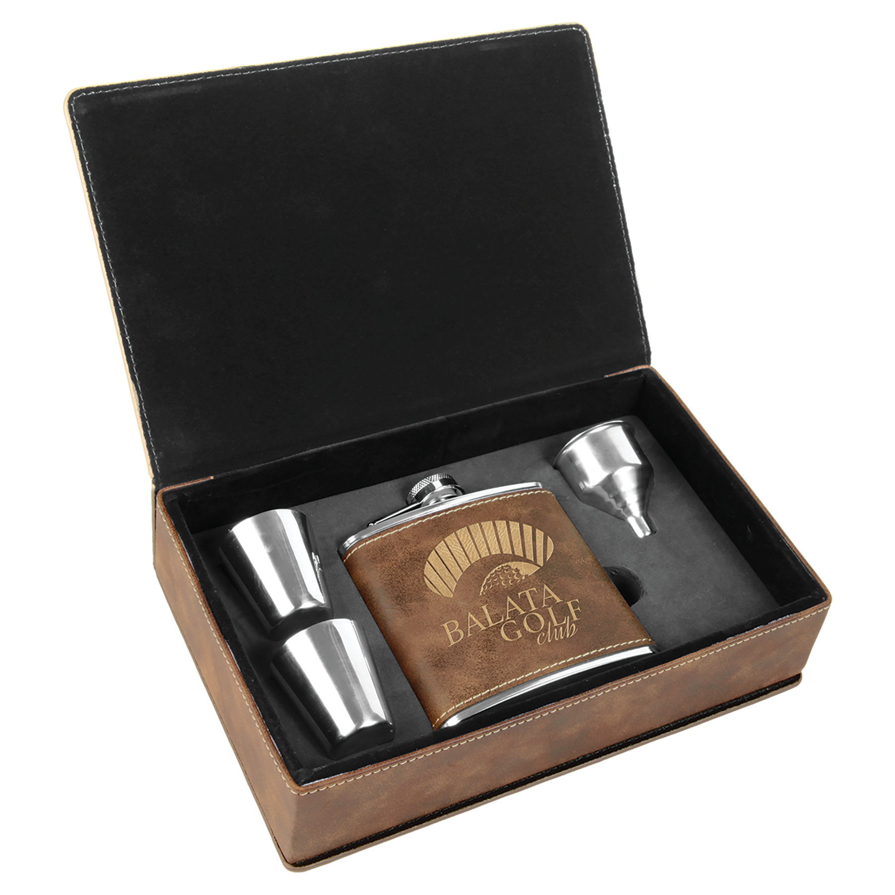 6 oz. Rustic/Gold Laserable Leatherette Flask Gift Set