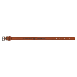 Laserable Leatherette dog collars are available in seven vibrant colors. All have a black back and are lightly padded for your pets comfort. The silver metal buckle and ring are heavy duty for durability and to keep yourpet secure. Available in four sizes.
